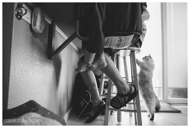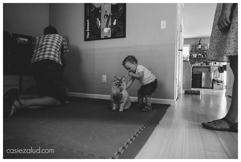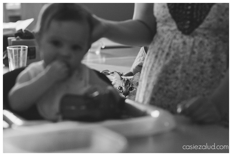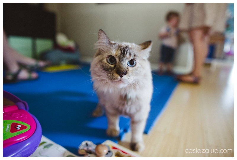 Jovi tolerates her “sister” and her sister tolerates her. Unless they are both after the same toy, that is when the trouble starts. For the most part, this active toddler seemed fine with Jovi during my visit. Instead it was her diaper rash that was bumming her out that evening. Can you blame her? Jovi was right there keeping a watchful eye on her as her parents tried soothing her with a bath, dinner and some stories. That cat has got the life, and I have to say she won me over by the end of the evening.