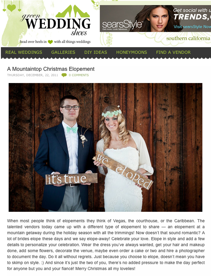 Weddings: Evergreen Mountain Elopement Styled Shoot featured on Green Wedding Shoes