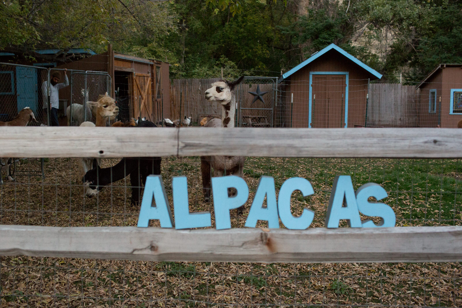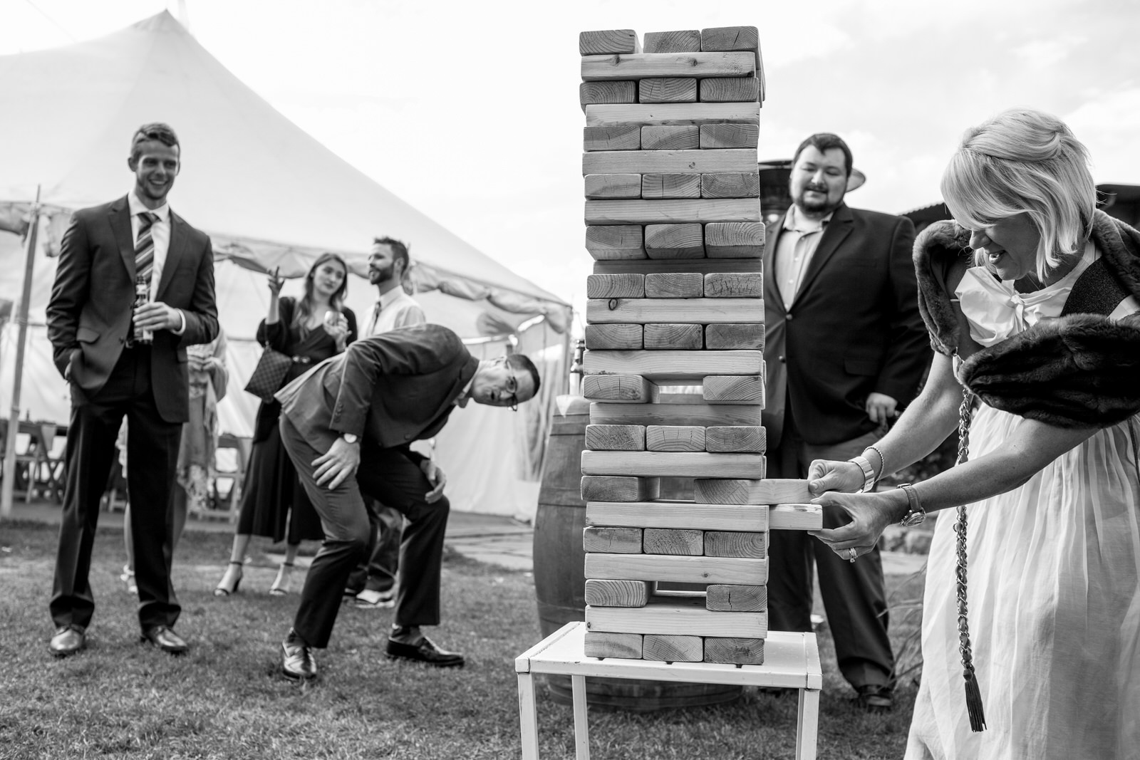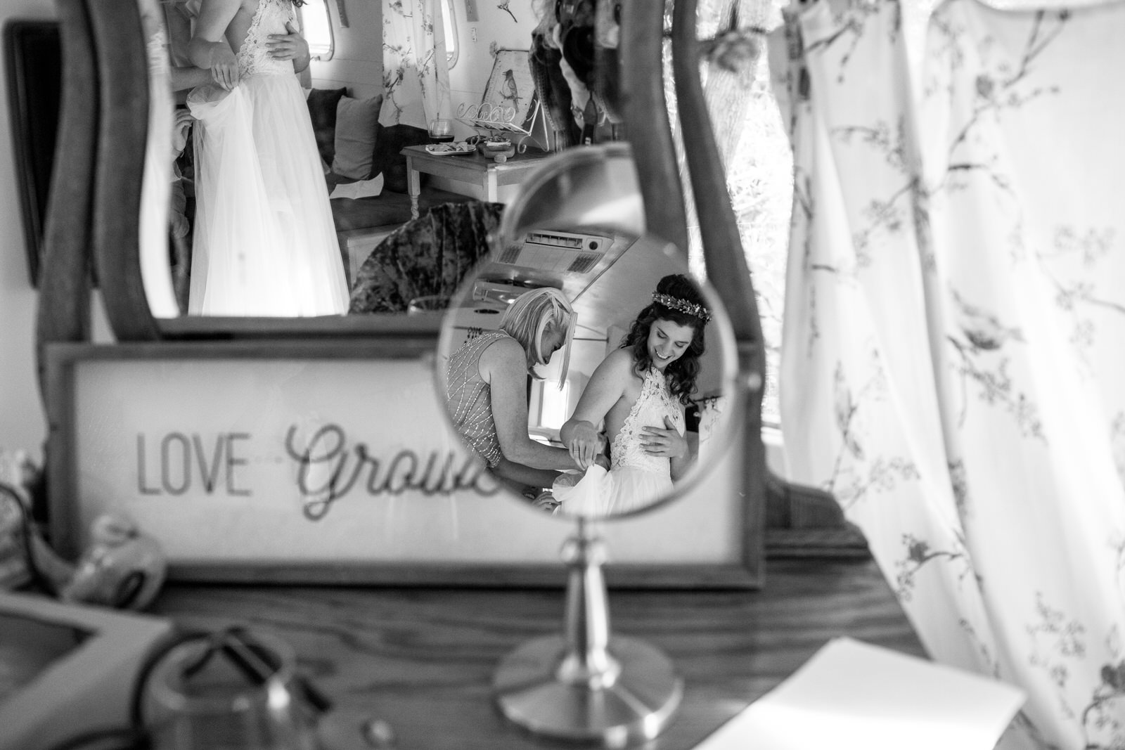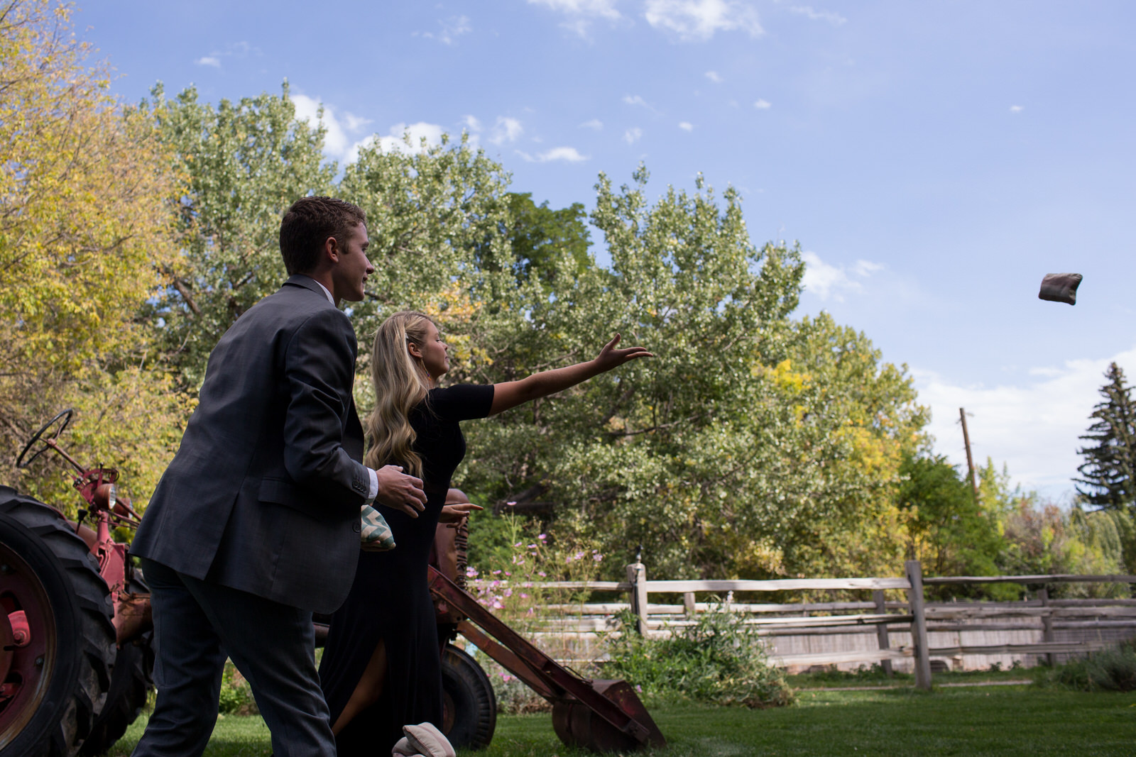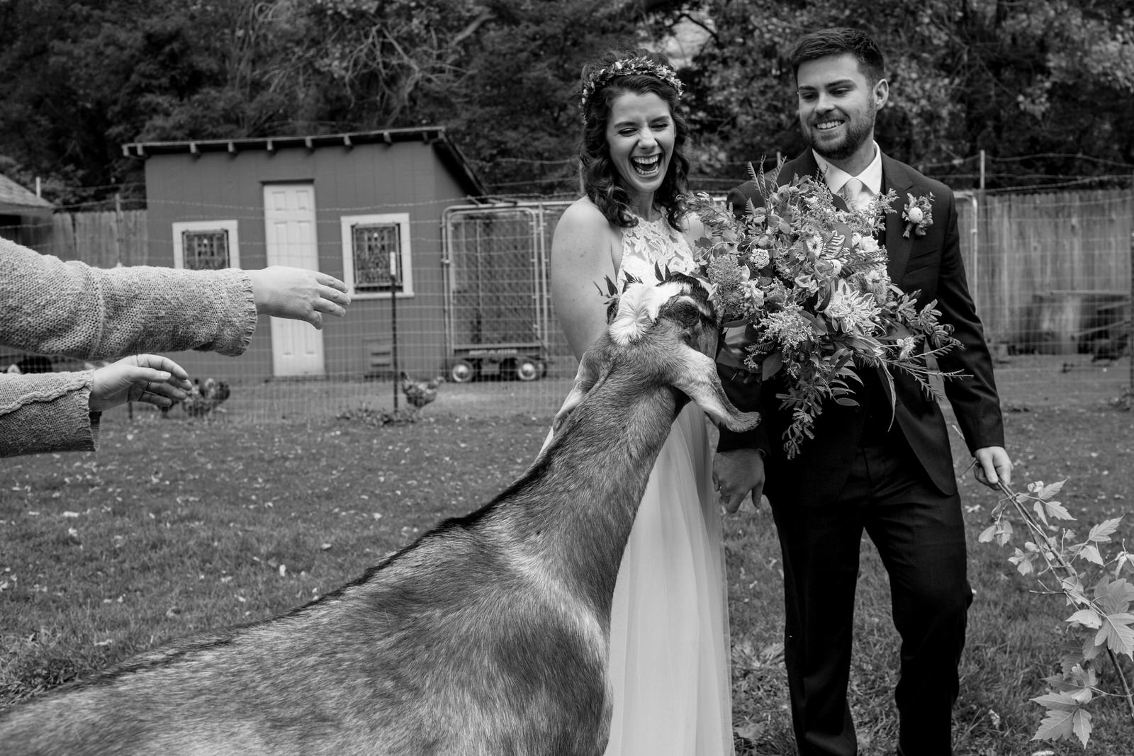This fall outdoor wedding photography at the Lyons Farmette included photos of getting ready in Airstream, fun farm animals, cocktails and games on the lawn.