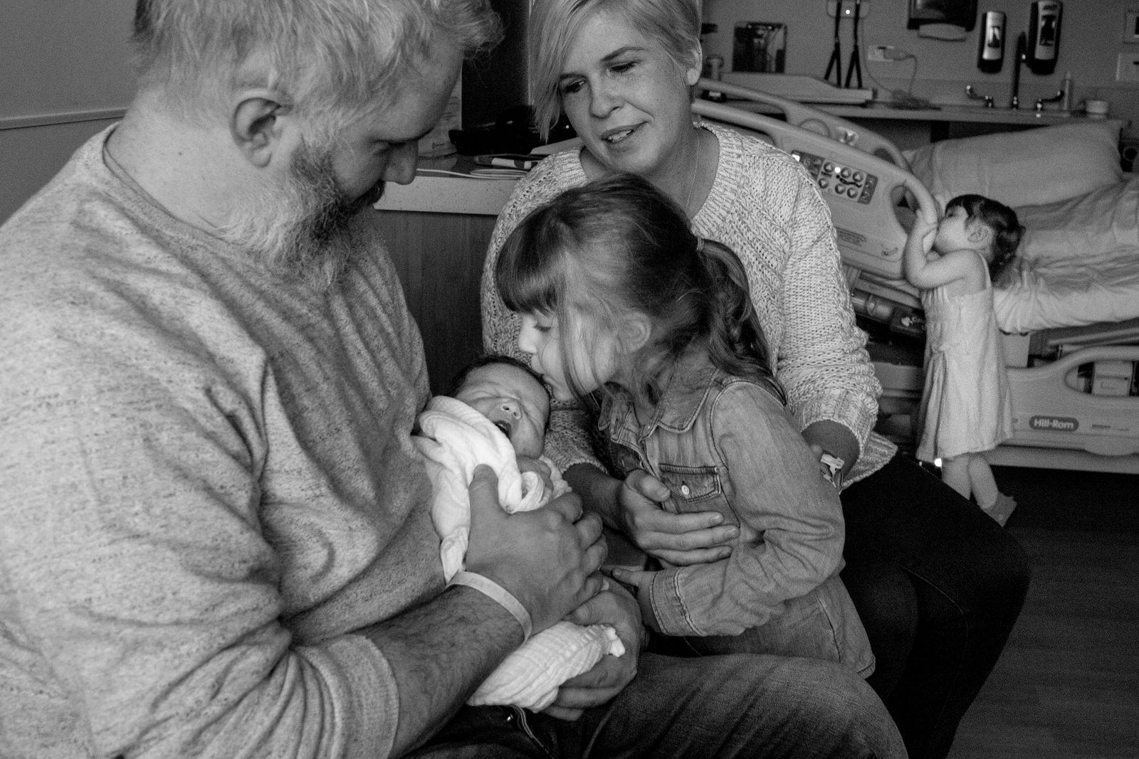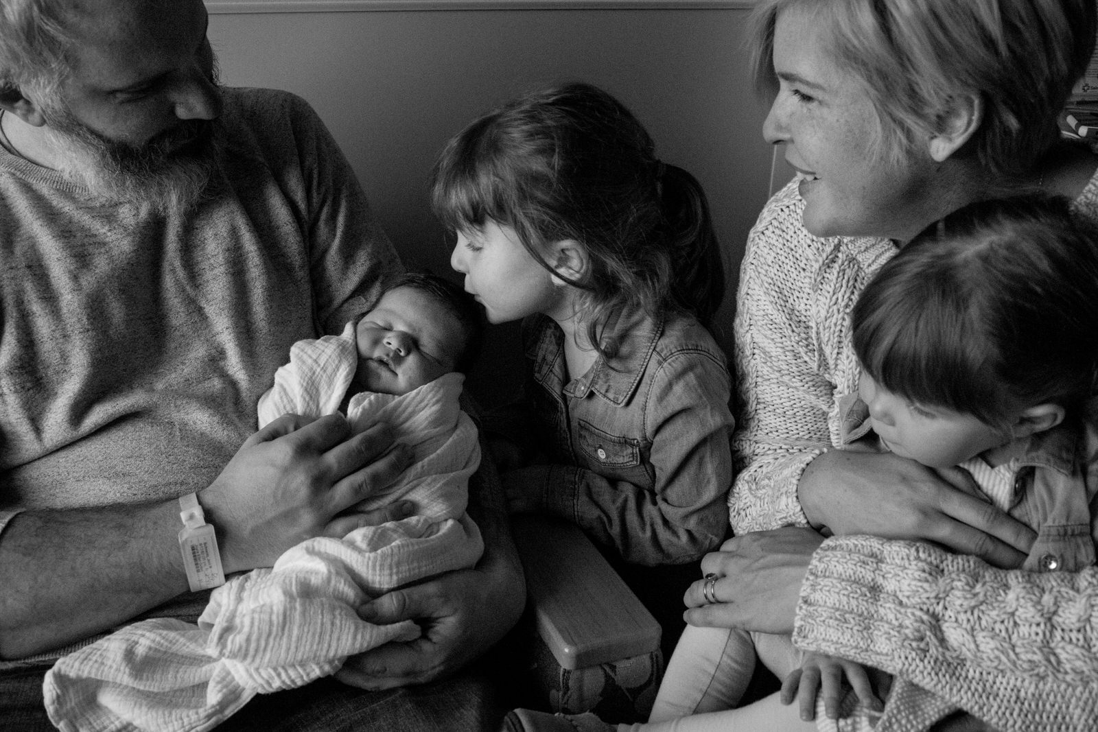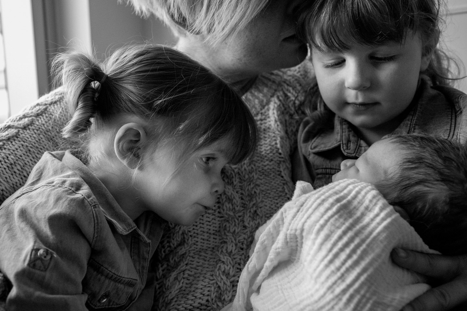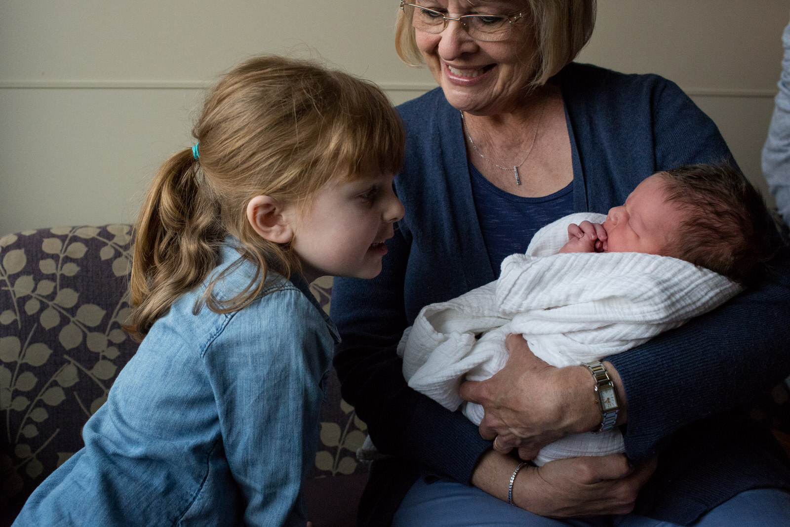 Introducing a new child to the rest of the family is a precious time. When this family welcomed their third child, I was invited to the hospital the very next day to make pictures of the older sisters meeting their little brother for the first time. It is an honor to be trusted to create newborn photographs at this stage of any family’s life.