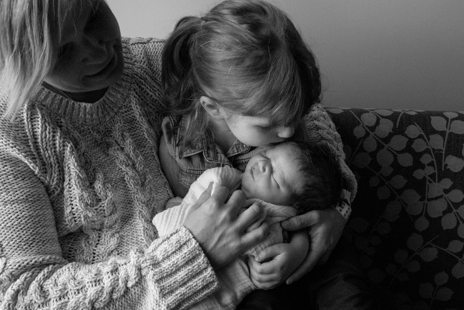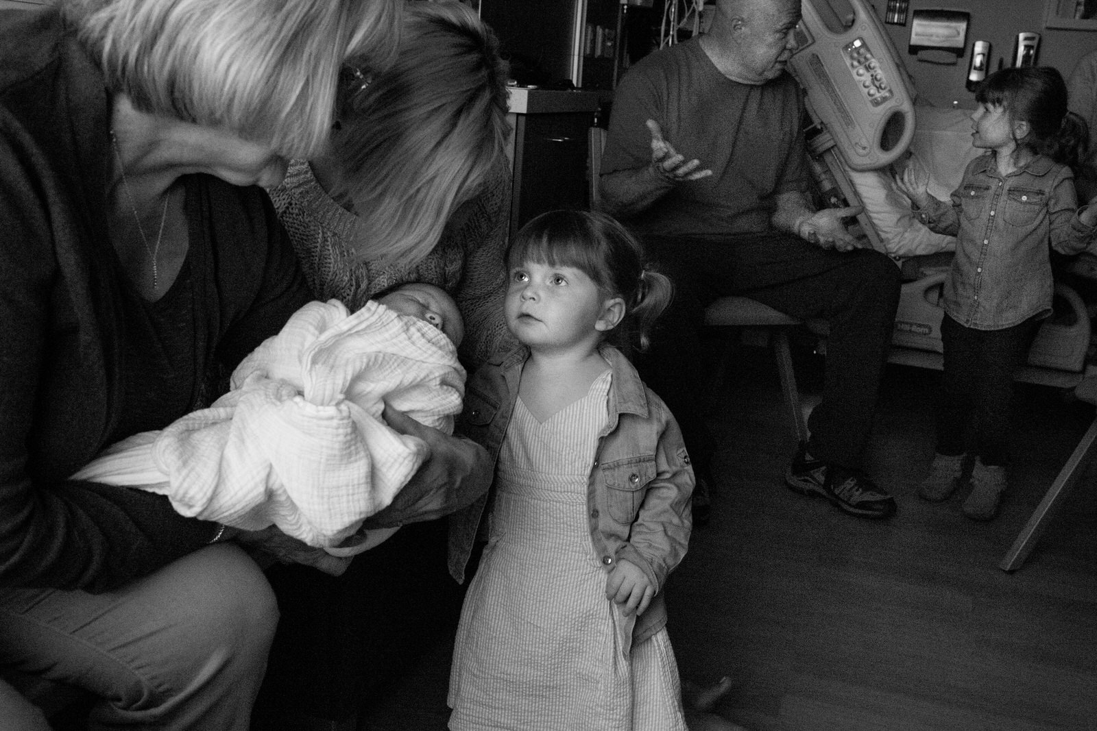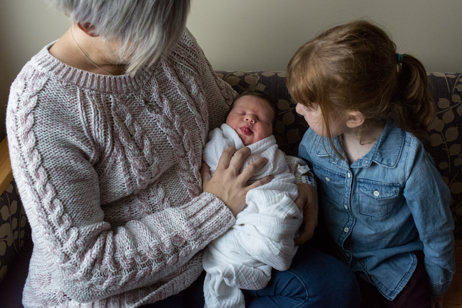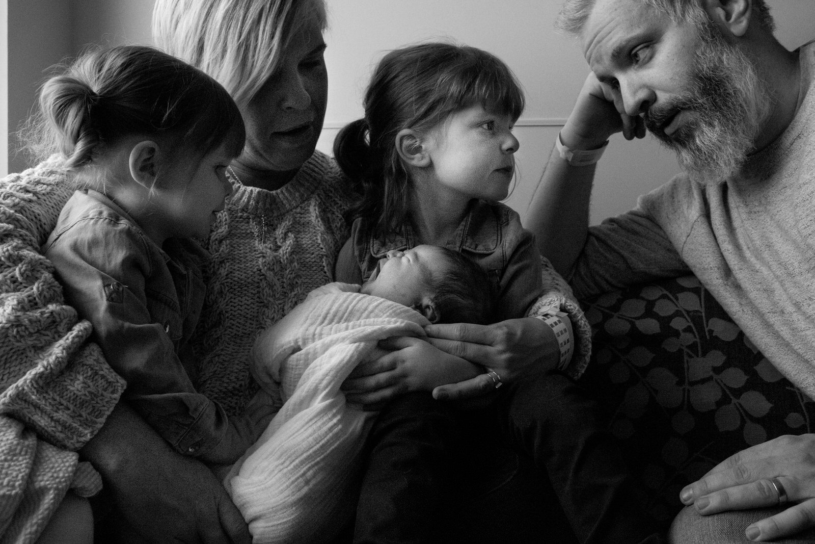 Introducing a new child to the rest of the family is a precious time. When this family welcomed their third child, I was invited to the hospital the very next day to make pictures of the older sisters meeting their little brother for the first time. It is an honor to be trusted to create newborn photographs at this stage of any family’s life.