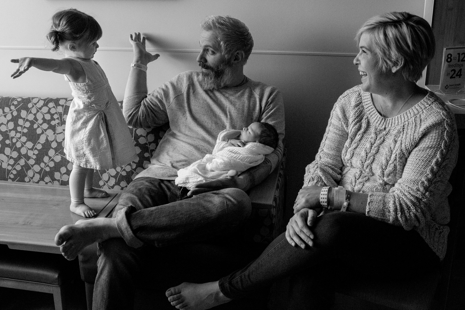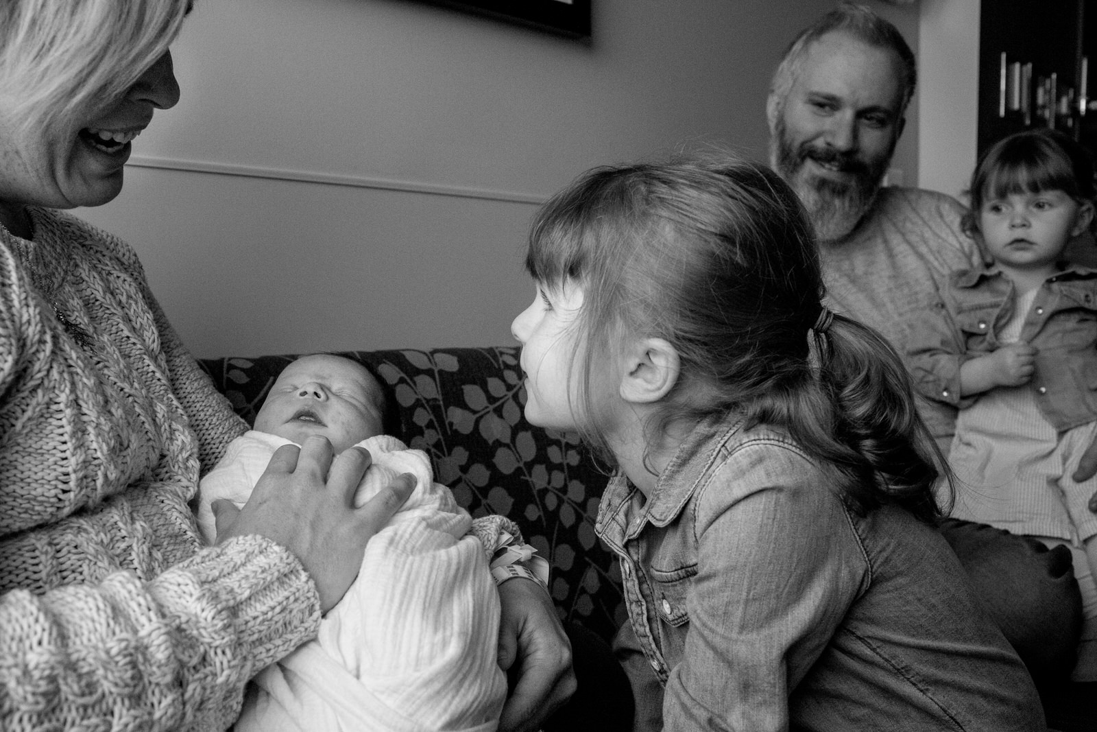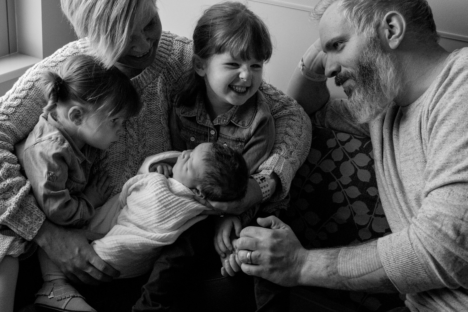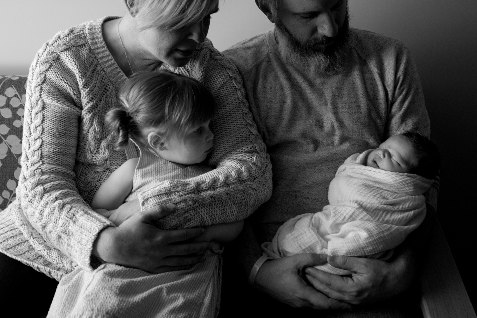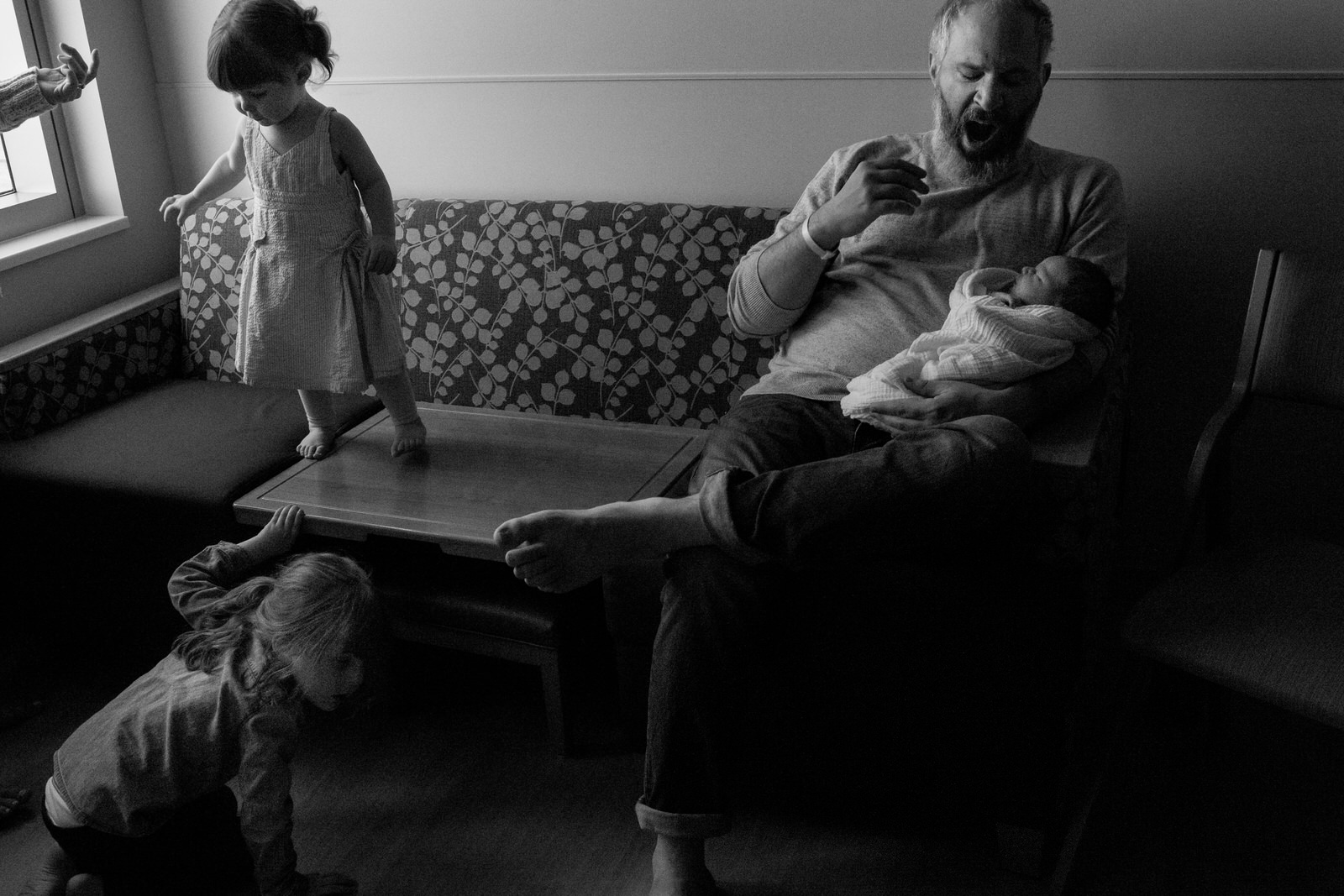 Introducing a new child to the rest of the family is a precious time. When this family welcomed their third child, I was invited to the hospital the very next day to make pictures of the older sisters meeting their little brother for the first time. It is an honor to be trusted to create newborn photographs at this stage of any family’s life.