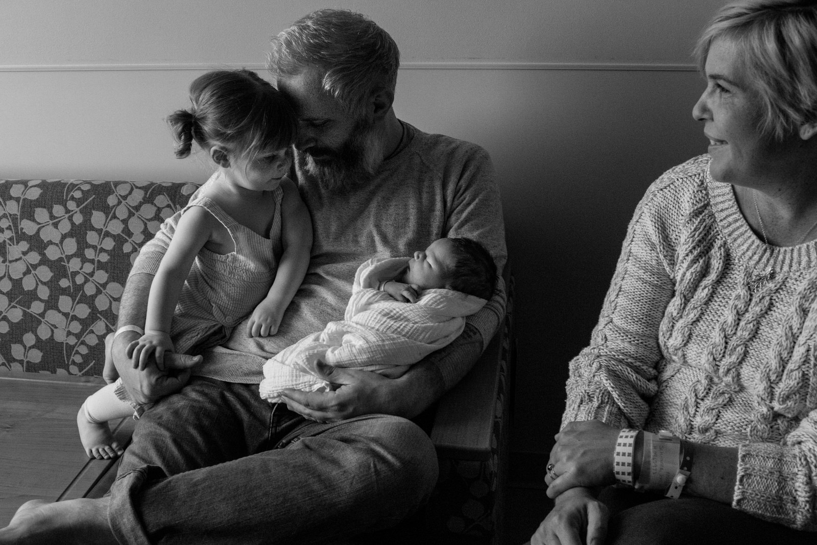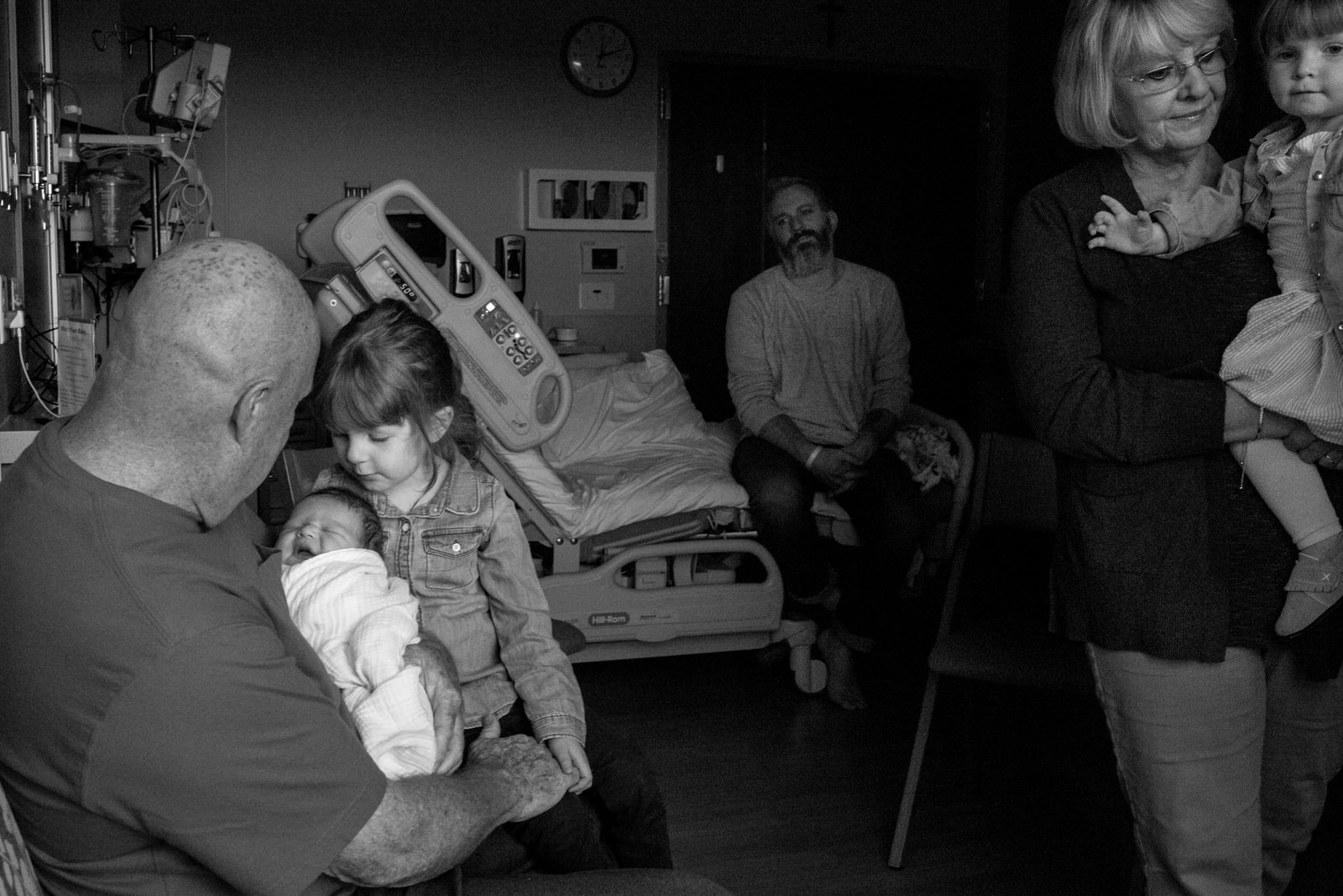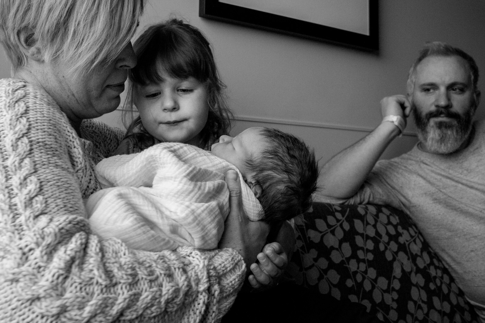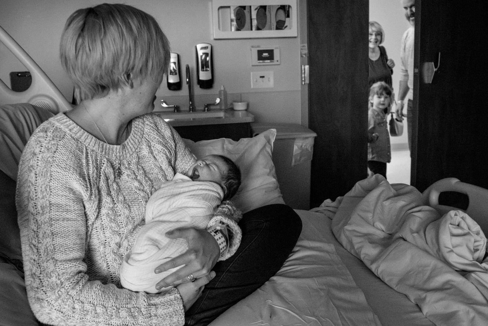Introducing a new child to the rest of the family is a precious time. When this family welcomed their third child, I was invited to the hospital the very next day to make pictures of the older sisters meeting their little brother for the first time. It is an honor to be trusted to create newborn photographs at this stage of any family’s life.